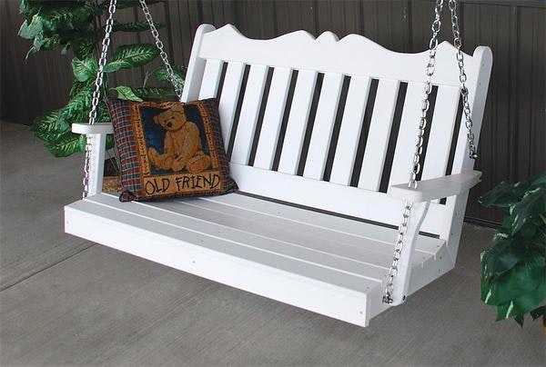 This American Made Furniture American Dahlia Poly Porch Swing makes for the perfect place to enjoy those long afternoons and relax into the evening. Crafted from durable and maintenance-free poly lumber, you can rest assured that you are making an investment in outdoor furniture that will last generations. Available in twelve color choices and optional throw pillows, this porch swing can be tailored to fit your decor.
