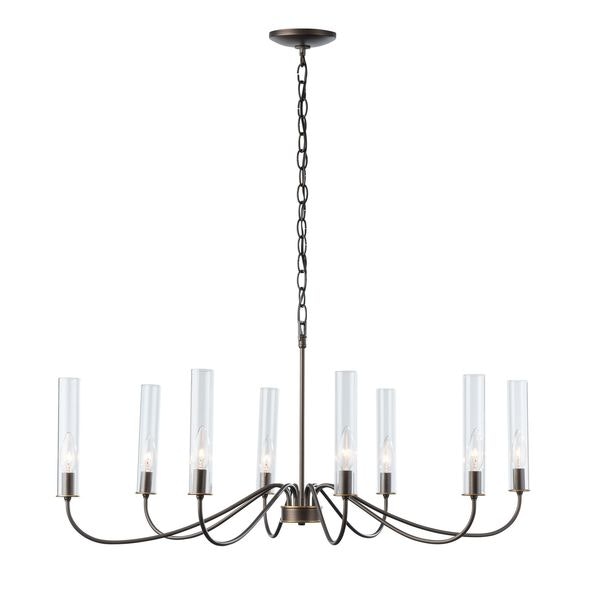 The American Made Grace Chandelier's classic design pays homage to the candle-lit chandeliers of the 17th and 18th century. This chandelier has 8 sweeping candelabra styled arms and each arm is framed with tall candle-like glass cylinders, encompassing the beauty of classic chandelier design from centuries ago. When the American Made Grace Chandelier is hung in any room, it makes a bold and timeless statement.