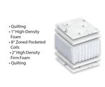 High-Resilience Foam Layers: Above the coils, multiple layers of high-density specialty foam are meticulously crafted to enhance comfort and durability. A plush quilting layer adds that extra touch of softness, creating an immediate sense of luxurious comfort from the moment you lie down.