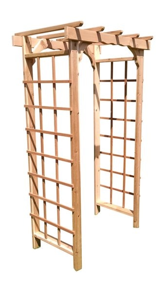 Our Morgan American Garden Arbor is a stylish way to set your outdoor space apart. These pieces look wonderful on their own, and even better when they are adorned with the beauty of climbing roses. Expand your garden with the help of this outdoor structure and you'll be glad you did! Make this Arbor your own by customizing with Pine Wood or Cedar Wood and finishing it with any of our stains or paints to make this the perfect accent in your backyard. We offer the Morgan Arbor in 3' or 4' to fit your specification.