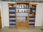 This deluxe solid wood bookcase has two cabinet doors in the bottom that can hold items you wish to stow away. Standing 83 1/2" wide and 78" high, it is topped with lovely crown molding in your choice of solid wood.