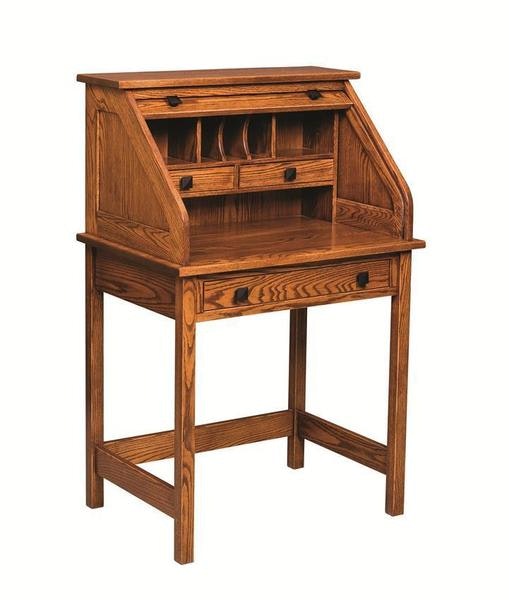 The Amish 30" Post Mission Rolltop Writing Desk is traditional and warm. Enjoy a special place for your writing projects, bills and general correspondence. A solid wood rolltop desk provides you with two beautiful looks. Display all the curves and shelves with the top rolled up, or bring it down to showcase the rolltop cover.