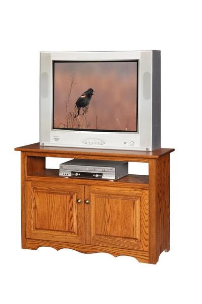 Our Amish 43" TV Stand is made in the tradition of country-style furniture with clean lines, except at the base of the piece that includes swirling cutouts.