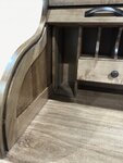This rolltop desk is shown in oak wood which is strong, beautiful, and durable. This heirloom quality desk is sure to serve your office for years to come. Call one of our Amish Furniture Specialists today, at 941-867-2233 with any questions.