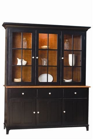 This solid wood hutch has three glass display doors on the top, plus three cabinet doors and three drawers on the bottom, providing maximum storage of your dining essentials. The hutch top backing is a solid wood tongue & groove back panel with a plywood back panel on the bottom section to prevent warping from seasonal changes.
