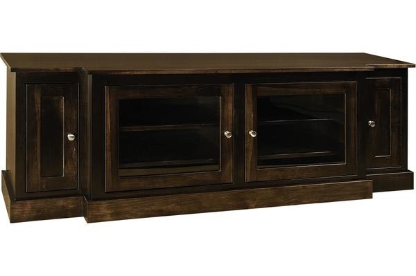 Our Amish 74" Roanoke TV Stand without Towers features a clean design that includes recessed inset panel doors on either side and two center glass doors. This stand has 6 adjustable shelves, 2 behind each glass door and 1 behind each wood door. The doors also come standard with soft-close hinges.