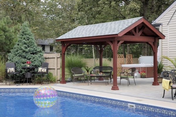 This backyard pavilion kit is the perfect covering for your outdoor lounge area by the pool. Add your favorite DutchCrafters Amish furniture and sit back and relax and enjoy the shade this Amish made backyard pavilion kit brings to your outdoor area.