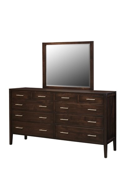 Handcrafted in Pennsylvania by skilled Amish artisans, this dresser is built with the care and precision that define enduring quality. Solid hardwood construction ensures it stands up to the test of time, while traditional half-blind dovetailed drawer joints provide strength for daily use. Inside, solid maple drawer interiors offer a smooth surface for clothing, and dust covers between drawers keep contents clean and organized. Soft-close undermount full extension slides make opening and closing drawers effortless and quiet, adding a touch of everyday luxury. A multi-step conversion varnish finish protects the wood, highlighting its natural grain and ensuring the dresser remains beautiful for years to come.