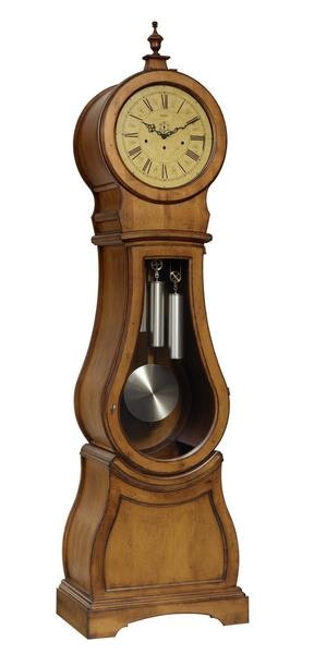 The unique curved case of this grandfather clock is just one of a variety of stunning features included with this American made grandfather clock.