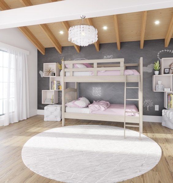 Handbuilt by skilled Amish artisans in Indiana, this bunk bed reflects time-honored woodworking techniques that prioritize durability. Constructed from solid hardwood, it’s built to handle the wear and tear of childhood, from jumping (though we might not encourage that!) to daily use, ensuring it remains a staple in your home for years. The inclusion of two bunkie boards means you won’t need box springs, simplifying setup and keeping the design streamlined.