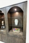 Elegant Display: Four upper glass doors with distinctive arched panels showcase your china or décor.