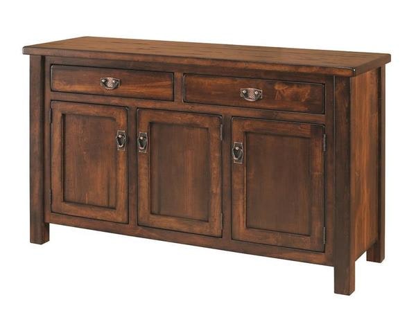 Shown in brown maple wood with Antiquated Michael's stain, this Amish Northwood Mission 59" Solid Wood Dining Buffet has a traditional look that will make any room feel warm and inviting. Have your buffet built with the same wood and stain combination shown or design your own look by choosing from nine top-quality hardwoods and a stain for a custom look that is unique to your own personal style.