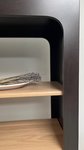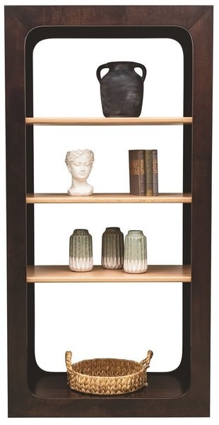 Picture this bookcase in your space. Its most captivating feature is the unique mitered faceframe with beautifully rounded corners, creating a soft yet defined silhouette that instantly catches the eye. The open shelving, set within this distinct frame, provides a perfect stage for curated displays, lending an airy, minimalist feel to the piece. This is modern design at its finest – thoughtful, clean, and built to highlight the natural beauty of the materials.