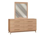 Aria 6-Drawer Dresser with Optional Mirror: Complementing the bed, the Aria 6-Drawer Dresser provides ample storage space with its six dovetailed drawers equipped with soft-close undermount slides. The optional matching mirror enhances the room's aesthetic.