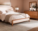 Aria Upholstered Bed: The centerpiece of this set, the Aria Upholstered Bed, features a bold, upholstered headboard that adds a touch of sophistication to your bedroom. With its clean lines and low-profile footboard, this bed offers a contemporary look without compromising on comfort. Built from solid hardwood, it ensures durability and timeless appeal.