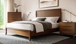 Aria 3-Drawer Nightstand: Flanking the bed, the Aria 3-Drawer Nightstand offers additional storage with its three soft-close drawers. Its clean, modern lines and tapered legs bring a refined look to your bedside, while its solid wood construction ensures longevity.