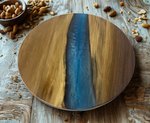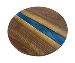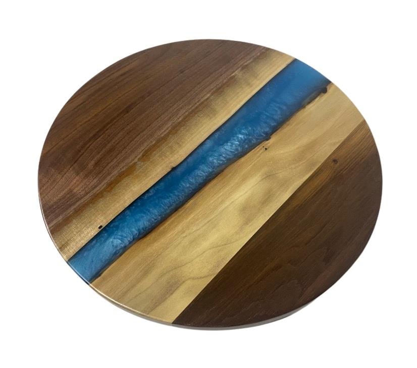 Amish Artistic Walnut Wood Lazy Susan with Blue River Epoxy In-Stock