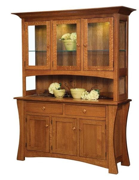 Beautifully handcrafted in Amish country, the Amish Azinger Arts & Crafts Dining Hutch offers a splendid display for fine china, collectibles and utensils. Each drawer glides smoothly, every shelf offers ample support and each door opens to the finest solid wood storage for dining room or kitchen.