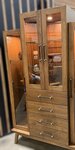 A standout feature is its tapered legs, which add a light, airy lift to the cabinet’s silhouette while nodding to classic mid-century design. The symmetrical layout—with glass-fronted cabinets flanking a central section—creates balance and visual interest. The glass doors invite you to admire what’s inside, while the central drawer stack offers practical storage for smaller items, keeping your space organized without sacrificing style.