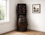This Barrel Hutch holds 7 wine bottles and up to 20 glasses.