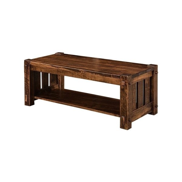 Rustic Farmhouse, Industrial Chic, and Mission Styling inspired the design of this unique rough-sawn coffee table. The Dutton is 48" wide and sits conveniently at a height of 24 1/4". This reinforced accent table is ready to take on whatever you can throw at it! Mortise and tenon joinery is used throughout to ensure a functional coffee table that will last for generations.