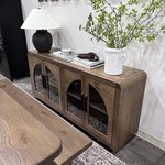 Imagine a piece of Amish furniture that doesn't just fill a space, but elevates it. The Bellevue Contemporary Sideboard is a masterful blend of clean, modern lines and the soulful touch of Amish woodworking, creating a focal point you'll admire for years to come. What truly sets the Bellevue sideboard apart are its gentle, arching doors. This graceful curve adds a soft, architectural elegance, inviting you to see what’s inside. The glass panels create the perfect showcase for your most cherished possessions. Picture your finest china glimmering in the dining room, a collection of heirloom novels standing proudly in the living room, or beautiful pottery adding a touch of warmth to your entryway. It’s more than storage; it's a personal gallery. Proudly handcrafted in the USA, this sideboard is built with integrity and attention to detail. Supported by a stylish plinth base, it has a solid, grounded presence that speaks to its quality. This isn't just furniture—it's a future heirloom designed for your life today. Best of all, you can make it uniquely yours. Tailor the Bellevue to fit your vision by choosing from a curated selection of hardwoods, rich finishes, and distinctive hardware. Ready to add a touch of handcrafted elegance to your home? Customize your Bellevue Sideboard and order today from DutchCrafters Amish furniture store. See more products from this woodshop: Urban Barnwood CollectionWarranty