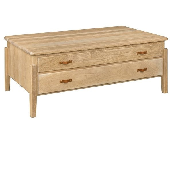 The table’s top features gently rounded corners, softening its silhouette and adding a subtle, approachable charm. Below, two generous drawers offer convenient storage—perfect for tucking away remotes, coasters, or even a stack of magazines—keeping your living area neat without sacrificing style. Each drawer is crafted with dovetail joints, a traditional woodworking detail that ensures durability and a precise fit, while full extension slides make accessing contents effortless. Warm leather pulls add a tactile, inviting touch, complementing the natural grain of the solid wood.