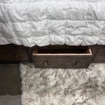 Beneath the mattress, seven dovetailed drawers offer ample storage for linens, out-of-season clothing, or bulky items that might otherwise crowd closets. The flush drawer fronts maintain a clean, streamlined silhouette, ensuring the bed’s aesthetic remains polished while maximizing practicality. This balance of form and function is a hallmark of the careful craftsmanship that goes into each piece.