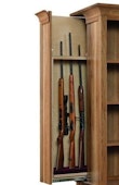 Standing 80 1/2" tall, this elegant bookcase combines display and security with a hidden gun cabinet capable of holding up to 7 long guns (up to 50" in length). Its sleek design integrates seamlessly into any room, offering both storage for your firearms and space to showcase books, décor, or collectibles.