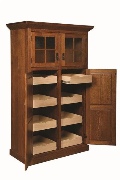 This Amish mission pantry supplies room for food, beverages, dishes, linens, kitchen utensils, cookbooks and more, all the while contributing to keeping your kitchen organized.