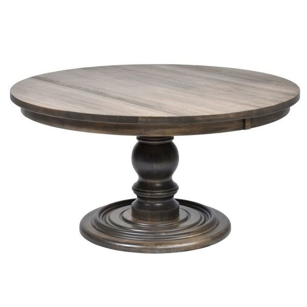 The Amish Brentwood Reclaimed Barnwood Extension Dining Table features a pedestal base that's sculpted from solid wood. Rounded and ready for gathering, it's a table your family can rely on every day.