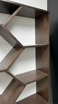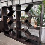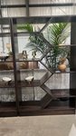 - Unique Display: Modern, open geometric design showcases items beautifully.