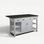 This 62" beauty doesn’t just look good—it works hard for your kitchen. Two center doors open to reveal storage for pots, pans, or pantry essentials, while open shelving at each end gives you the perfect spot to showcase cookbooks, knick-knacks, or anything that adds personality to your space. Three spacious drawers along the front keep utensils, gadgets, and other clutter neatly organized, making it effortless.