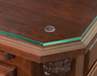 This hardwood desk commands the room with a rich, thick 1" desk top and raised panels that accentuate your wood choice. The colonial style fluted columns display the quality in this design adding a unique flair to your office design.