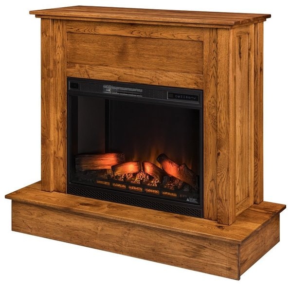 Crafted by skilled Amish artisans in Indiana, the mantel itself is a study in thoughtful design. Its sturdy, broad base grounds the piece, while vertical side panels frame the electric insert with clean, understated lines that highlight the natural beauty of the wood. The flat, generous top provides the ideal surface for displaying family photos, seasonal decor, or a favorite vase, adding both function and personality to the room.