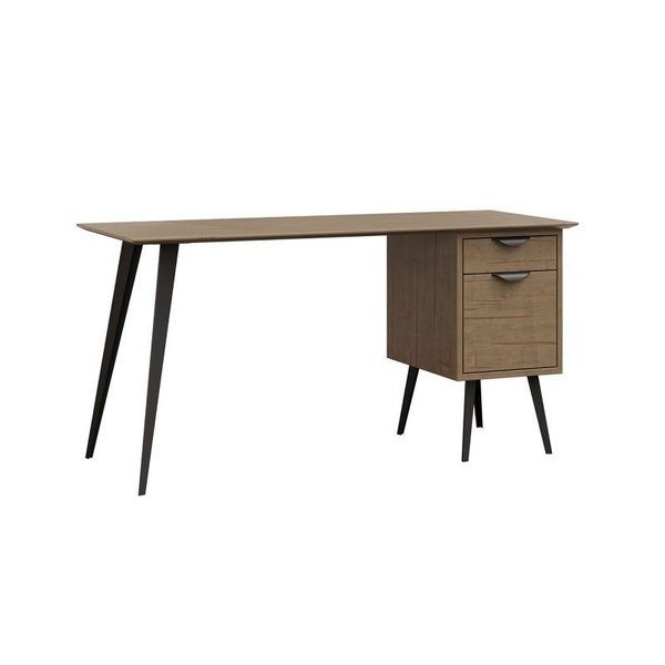 A standout feature is the beveled top edge, which adds a subtle touch of refinement to the desk’s silhouette without overwhelming its understated design. This detail softens the look of the solid wood top, allowing the natural grain and warmth of the wood to take center stage—whether you choose the rich depth of Rustic Cherry, the smooth versatility of Brown Maple, or another hardwood that suits your space. Complementing this woodwork are sleek steel legs, their angular profile introducing a modern edge that contrasts beautifully with the organic texture of the hardwood, creating a harmonious balance of materials.