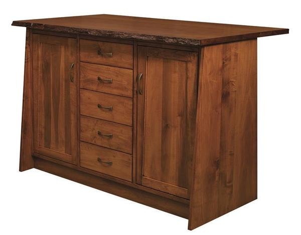 For a more modern finished look, we offer the top without the live edge to give you a couple of options for you to choose from that will best fit your needs. With five pull out drawers and two cabinet doors, this handcrafted kitchen island offers plenty of storage for your kitchen needs.