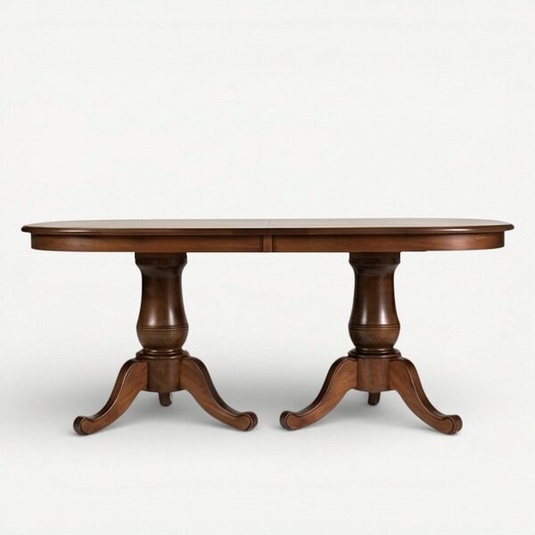 Make every meal feel like a special occasion with the Amish Oakland Double Pedestal Dining Table. Aptly named for its commanding presence, its undeniable beauty and impeccable construction make it truly fit for a head of state. It's no surprise that this table is a best-selling table at DutchCrafters, arriving ready to impress from the moment it enters your home. This table is elegance personified, a true classic style brought to life in solid wood. The foundation is built upon two stunning pedestals, each featuring graceful curves and beautiful shapes. The subtle curve of each leg, flowing from the turned column to the splayed feet, showcases the artistry of the Amish woodworkers and adds a touch of timeless sophistication. This double pedestal design provides incredible stability and allows for a generous tabletop size, perfect for hosting memorable gatherings. Imagine this Amish double pedestal table gleaming from your dining room, its smooth, solid wood top reflecting the candlelight just before a sit-down dinner with family and cherished friends. Crafted entirely from the finest solid wood, this table is built not just for beauty but for enduring strength, destined to be a treasured heirloom passed down through generations. As with all our handcrafted pieces, you can custom design the look of your Oakland table by selecting from our many custom furniture options. Choose your ideal size, select your preferred premium hardwood, and personalize it with the perfect finish to perfectly complement your dining space and lifestyle. If you have any questions about Amish dining tables and kitchen tables, or want to explore specific customizations for the Oakland table, please contact us. Our design consultants are always happy to assist you in creating your perfect piece. Order your stunning Amish Oakland Double Pedestal Dining Table today and invest in timeless beauty and quality.See more products from this woodshop: Bay Ridge Collection