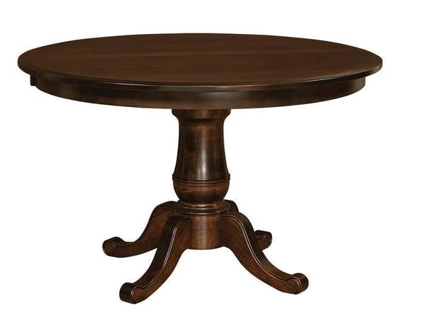 Bring a touch of stately elegance and charming style to your kitchen or dining room with the Amish Oakland Round Single Pedestal Table. So elegant it's fit for royalty, this table offers a sophisticated and approachable look, creating a warm and inviting atmosphere for every meal and gathering. The heart of the Oakland table's design is its beautifully crafted single pedestal base. This substantial base, with its classic turning and graceful splayed feet, provides exceptional stability while allowing ample legroom. The round tabletop inherently promotes conversation and connection, making every seat the best seat in the house. This table is not just beautiful; it's incredibly versatile. With extensions available, the whole family can be comfortably accommodated on holidays, special occasions, or whenever extra guests arrive. The seamless integration of these leaves transforms the table from an intimate round to a spacious oval, ready for any event. Like all our furniture, the Amish Oakland table is handcrafted from solid wood by skilled artisans, ensuring a piece of enduring quality that will be cherished for generations. Ready to create a dining table that perfectly reflects your style and meets your needs? You can choose your size, hardwood, finish, and more to custom design your new Amish dining table. Invest in a table that is both a work of art and a functional masterpiece. Please call us with any questions, or order online today to start designing your custom Oakland table!See more products from this woodshop: Bay Ridge Collection