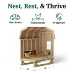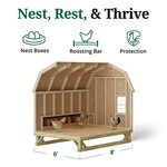 This state of the art kit comes with tempered glass and screens, a ventilation bar, and a ramp included! This coop has a laying area for 6 to 8 hen, and nesting area for up to 12, so you can start reaping the benifits of fresh eggs.