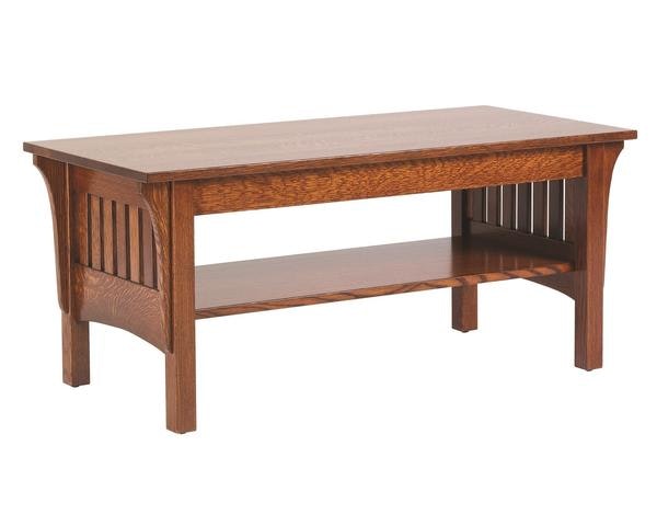 The Hartsville Mission Coffee Table is Amish crafted in your choice of wood type and the stain color to ensure that it will match your home decor. Not only will this coffee table look great in your traditional or contemporary living room, it can provide much needed storage with the large shelf and an optional drawer.