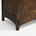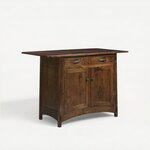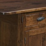 This kitchen island is built from rustic cherry wood with Michael's Cherry stain, which gives the piece a dark rustic look and will complement a room well. You can choose to have your custom island built with the same wood and stain combination or from your choice of premium North American hardwoods available, as well as a stain choice that will best complement your home and style preferences.