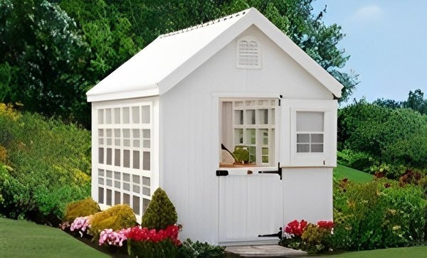 The Amish Colonial Gable Greenhouse combines traditional charm with spacious functionality, making it a standout choice for home gardeners. Available in multiple sizes, it ranges from 96" to 120" wide and 96" to 192" deep, with interior heights up to 124". This greenhouse is built from durable LP Smartside siding and arrives primed for paint so you can match it to your home or garden. Features include working windows with screens, transom windows, and decorative colonial louvers to improve ventilation and light flow.