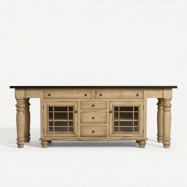 What truly sets this piece apart is its unmatched level of customization. Choose from premium hardwoods and a wide range of stain colors to create a look that complements your kitchen perfectly. Select from multiple countertop options—including butcher block, smooth or rough-sawn styles—and add features like a drop leaf for extra seating or workspace. Optional distressing creates a softly aged appearance for those who love the warmth of timeworn elegance.