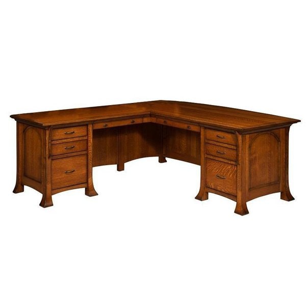 Displaying luxurious craftsmanship and exquisite style, the Craftsman Mission L-Shaped Desk showcases its flared feet and corbels that define the mission style. This L-shaped Amish desk is perfect for a corner office and provides ample work space for when it's needed.