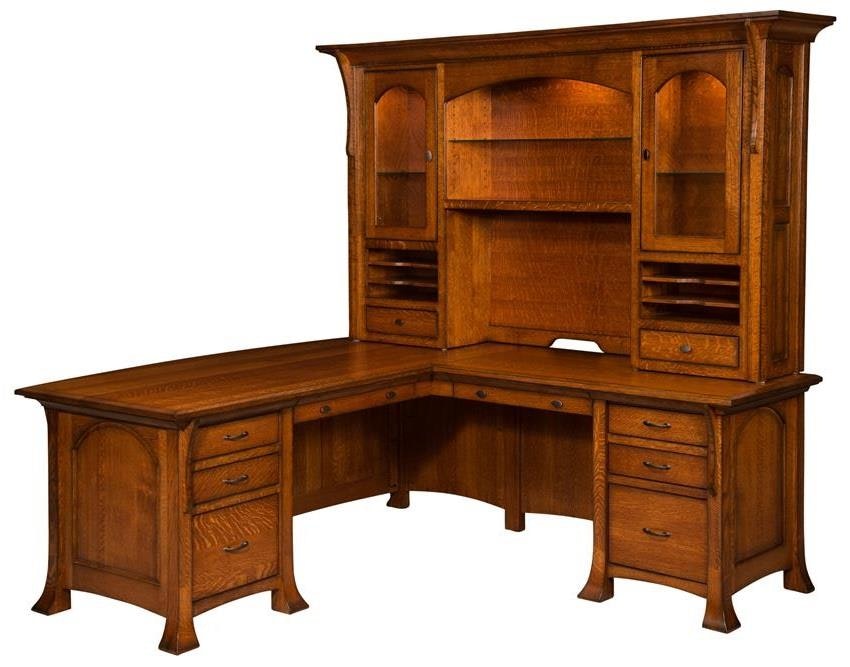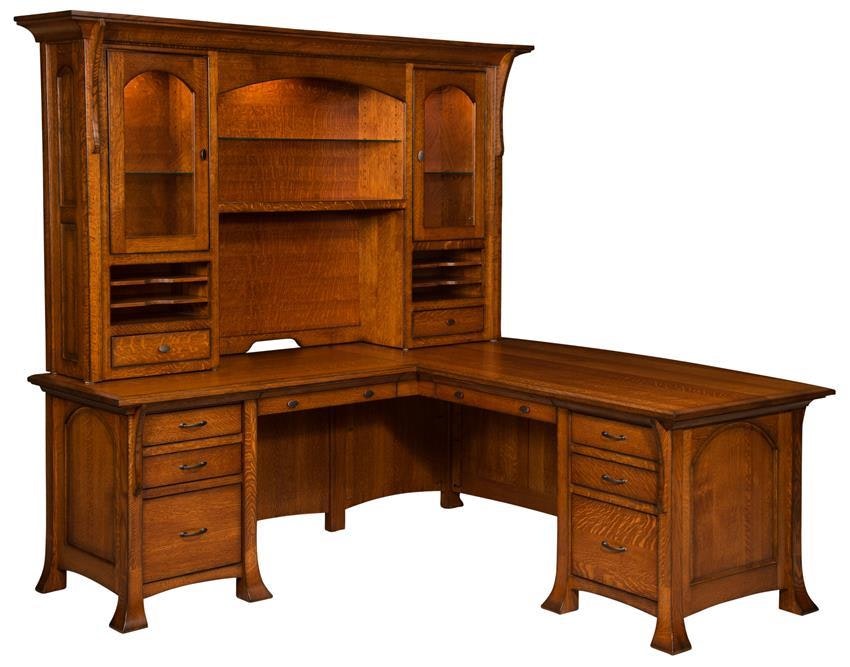 Amish Craftsman Mission L-Shaped Desk with Optional Hutch Top