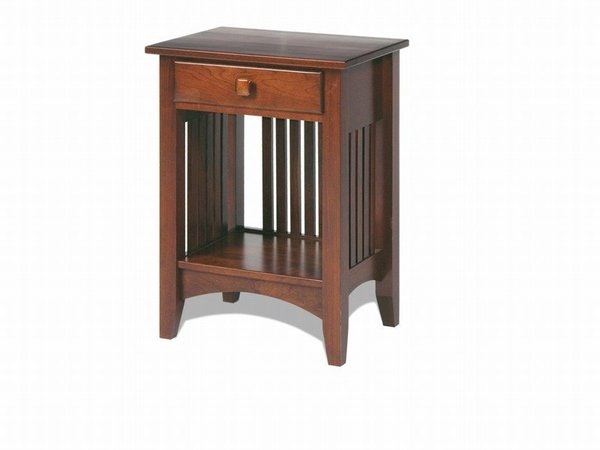 Its design highlights traditional Mission elements, most notably the vertical slat panel beneath the single drawer. These clean, straight slats create an open, airy feel, preventing the nightstand from looking heavy—ideal for both cozy and spacious bedrooms. The single drawer, positioned neatly above this panel, offers a convenient spot for storing bedtime reads, glasses, or small electronics, while the lower shelf (framed by the same slats) keeps items like a favorite blanket or water glass within easy reach.