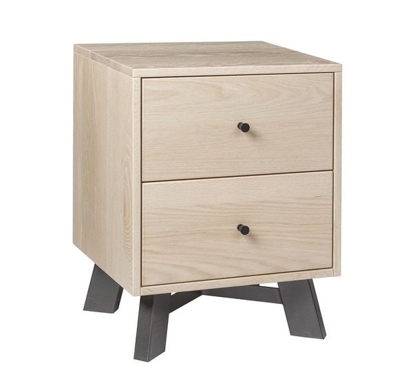 A key design element that sets this nightstand apart is its striking base: angular, dark-finished legs that create a bold contrast with the solid wood frame. These geometric legs not only provide sturdy support but also introduce a subtle modern edge, elevating the piece from basic to memorable. The contrast between the light wood top and dark legs adds visual interest without overwhelming, making it easy to integrate into your existing decor.