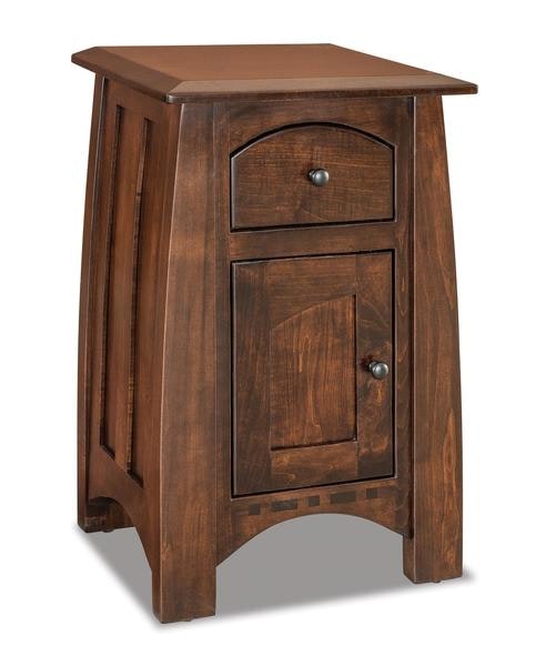 Store with style in your new Amish Colorado Springs Mission Nightstand Cabinet with One Drawer and One Door. Crafted in the hardwood and finish color of your choice, this Amish nightstand can be suited for any bedroom. Check out some of the standard features of this bedside table below.
