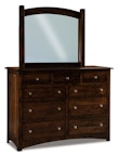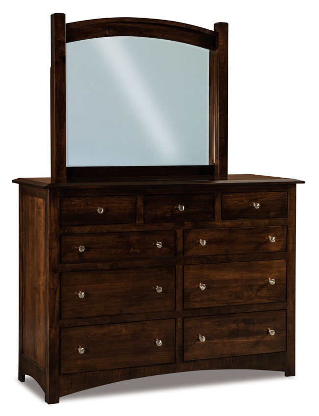 You've found beautiful bedroom storage with the Amish Fern 59" Nine Drawer Dresser with Optional Beveled Mirror. This dresser is Amish made with quality wood. The best part is your dresser will not look like everyone else's because you can select the size, wood, stain color, hardware and features that fit your bedroom best.